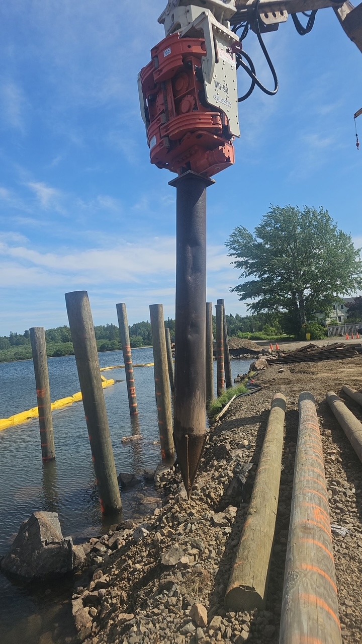 Precision Pile Installation in Riprap for Future Boardwalk Construction Innovative Solutions with the Gilbert MultiGrip...